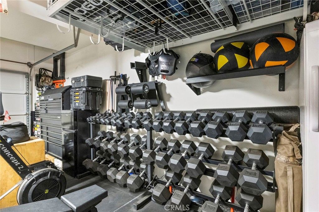 Lifestyle and tech upgrades elevate this home: a full security camera system, Sonos surround sound in every room, built-in ceiling speakers in both living rooms, and waterproof rock speakers outdoors. Fitness lovers will appreciate the fully built-out home gym (available for purchase separately).
