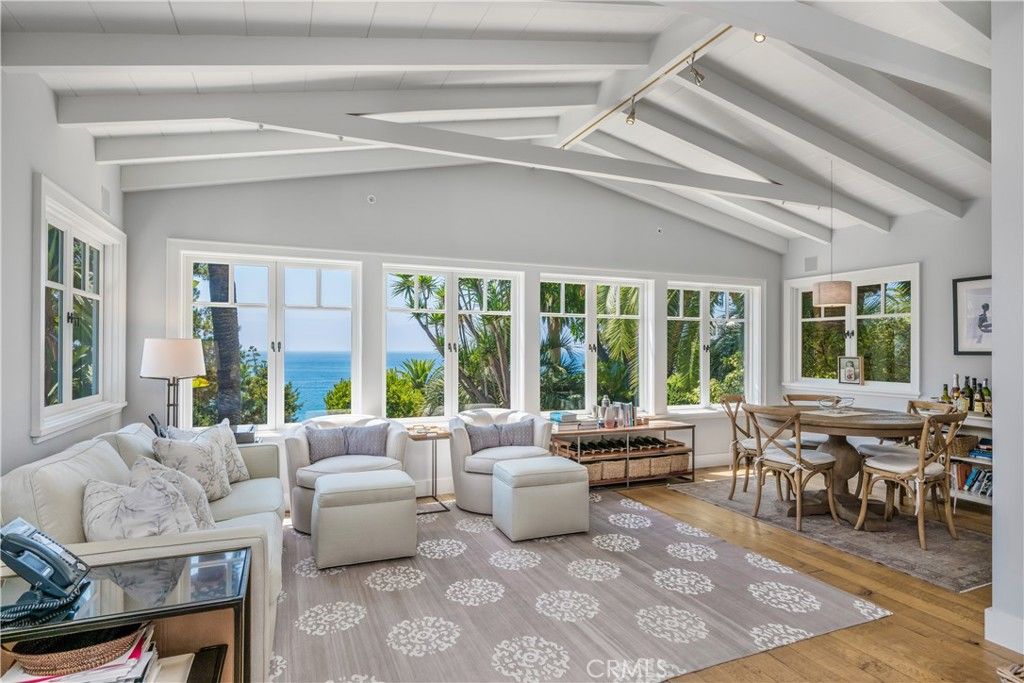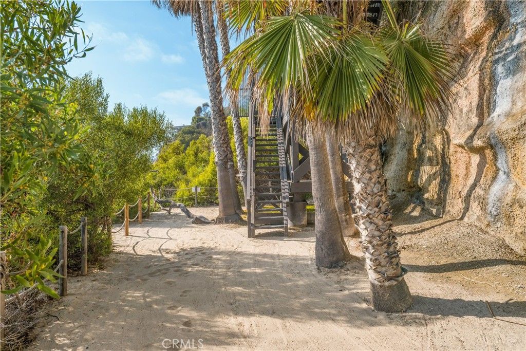 The true feeling and spirit of old Laguna lives on - in the Cypress Compound. Privacy, architectural excellence, and untouched natural splendor converge on maturely landscaped coastal acreage to create a legacy estate. Perched above Thousand Steps Beach, this singular oceanfront compound has been mindfully renovated, with all three structures retaining their original historic footprints. The irreplaceable Chris Abel-designed main residence, anchored by a Monterey Cypress, rests on a bluff 70 feet above the surf, offering seclusion and uninterrupted coastline vistas. This single bedroom architectural gem consists of a spacious living salon, a kitchen overlooking the sand, and a sizable deck for all-season enjoyment. Two fully-equipped bungalows serve as a well-appointed extension of the primary quarters. The upper features a one-bedroom apartment while the lower structure offers a two-bedroom flat on the top level and a one-bedroom accommodation with a large multipurpose living room below, all with individual kitchens. The pristine grounds have been consciously landscaped with native plants and mature trees, creating an unspoiled retreat. The estate's amenities are truly remarkable. An exclusive double-gated staircase with an observation deck leads to a roped-off, 15 ft deep privately owned beach area which extends along the oceanfront property line. Thoughtful consideration was given to not overbuilding this incredible parcel yet it does not lack incredible modern improvements: a 45+ ft long infinity edge pool with first-row views of the Pacific was added in recent years. Adjacent to it, a state-of-the art outdoor kitchen and open air cabana create a perfect setting for high-level entertaining. Those seeking more active recreation will also enjoy the quarter-sized basketball court. Beyond its boundaries, this enclave offers a coveted location near some of the most prestigious resorts in Orange County: the Montage, Ritz Carlton and St.Regis are all merely miles away.