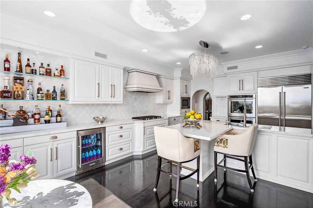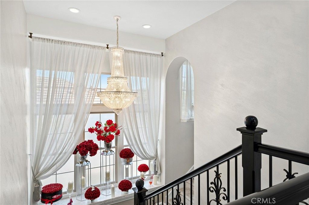 Indulge in the serenity of elevated ocean-view living in Newport Coast at this exceptionally private estate, nestled on an oversized lot behind the guarded gates of Newport Ridge North. Thoughtfully upgraded, this refined residence captures breathtaking vistas of the Pacific Ocean, coastline and sparkling city lights. Set on a tranquil cul-de-sac with approximately 9,322 square feet of private grounds, the property offers a rare opportunity to enjoy sophisticated resort-style living. The interiors are as impressive in size as they are in design, encompassing nearly 4,432 sqft. of curated living space. Crafted for seamless indoor-outdoor living, the home features 5 ensuite bedrooms, including a main-level guest suite with separate access, and 5.5 opulent baths, ensuring comfort and flexibility. Entertaining is effortless with formal spaces complemented by an executive-style office on the main level, and an all-season loggia that opens to the outdoors"”ideal as a game room, lounge, or additional gathering space. The chef-caliber kitchen is appointed with custom cabinetry, marble countertops, premium appliances, and a striking built-in bar. An oversized eat-in island anchors the space and flows seamlessly into the family room and expansive backyard. The backyard is a sanctuary featuring tranquil water features, outdoor kitchen with built-in BBQ, and multiple spaces designed for entertaining and relaxation. Upstairs, the primary suite serves as a peaceful retreat, offering sweeping ocean and city-light views. Enjoy a cozy fireplace, boutique-style walk-in closet with illuminated custom built-ins, and a spa- inspired primary bath with dual vanities, a soaking tub, walk-in shower, and a secondary walk-in closet. A private balcony invites you to take in panoramic views"” perfect for morning coffee or sunset reflections. Designed for both intimate moments and larger gatherings, the estate also includes a detached suite offering