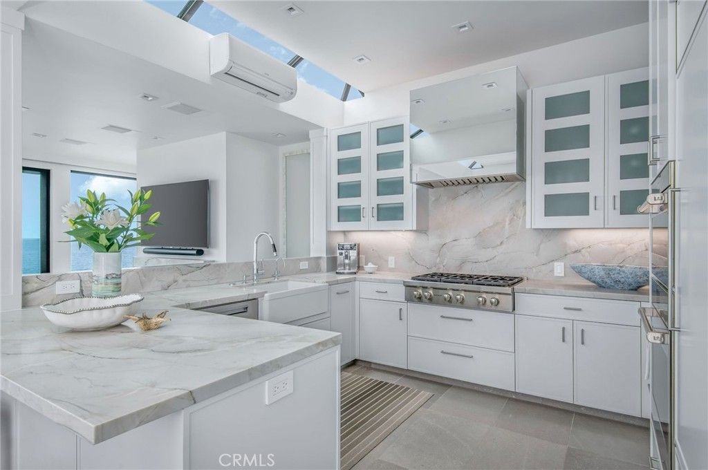 An extraordinary example of contemporary Chris Abel-designed architecture with unmatched ocean views. Artistically refreshed in 2023, this private estate with direct beach access offers nearly three thousand square feet of meticulously designed interiors. Thoughtfully integrated with its surrounding environment, the property was designed to maximize the striking coastal views with floor-to-ceiling windows and multiple glassed-in patios. The grand great room wows with panoramic vistas and is an ideal area to entertain as well as unwind, with the living, dining, and kitchen spaces seamlessly blending together to create a serene oasis. Fully renovated and ready for the most discerning home chef, the kitchen offers top-of-the-line appliances, new cabinetry with plentiful storage, and tasteful stone countertops. The living area is anchored by a fireplace and features access to a large balcony which seemingly floats above the sand below. Breathtaking views of the Pacific continue in the retreat-like primary suite with its multiple windows and another of the home's decks. The secondary bedrooms are also ocean-facing, offering guests an unparalleled experience. Every detail of the exterior space has also been considered, with patio areas and an in-ground spa for taking in the coastal panoramas. Fully modernized for everyday living, this property is outfitted with a state-of-the-art audiovisual system, automatic Lutron shades, and a two-car garage. Stunning, updated interiors, endless views, and a convenient location make this estate truly one of a kind.
