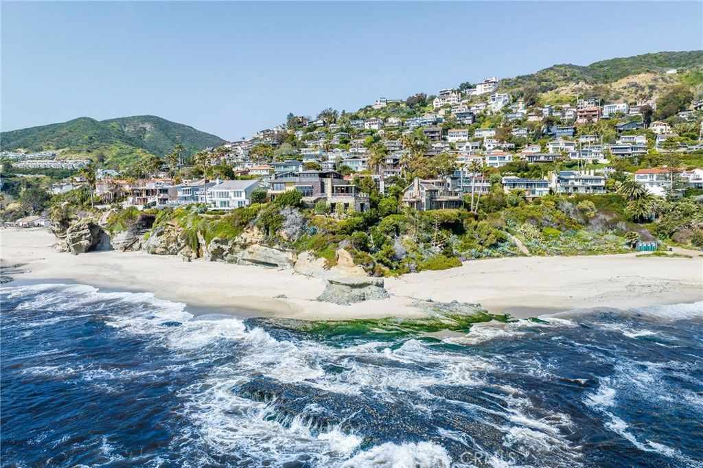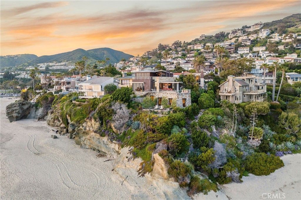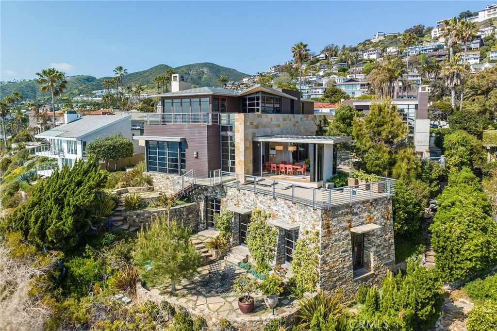 15 Camel Point is an exquisitely executed contemporary oceanfront offering with rare direct beach access via the estate's private staircase. Sited on over a third of an acre at the end of the point just south of the famed Montage Laguna Beach, this architecturally significant property designed by Bill Murray features stunning 270-degree views of the Pacific Ocean. The interiors, curated by Tommy Chambers, are a study in form and function: concrete, glass, natural stone, and wood elements are seamlessly combined throughout. The main level of this approximately 5,100 square foot estate located in one of Orange County's most sought-after gated enclaves features distinct entertaining areas, with walls of glass on all sides and views of the Pacific Ocean beyond. Numerous multi-paneled doors expertly connect the interior with the property's several large patio areas for the essential indoor-outdoor California living experience. The primary suite occupies the majority of the upper level and is comprised of an ocean-facing bedroom, dream bathroom with stand alone tub, a massive master closet, and an adjacent home office. The lower floor can be utilized as a home gym, play area, or converted into additional sleeping quarters. A garage with a hydraulic lift is a car lover's dream. The numerous spacious outdoor patios offer an ideal setting for enjoying panoramic views spanning from Dana Point to Palos Verdes in an ultra-private location, with West Street, Treasure Island, and Aliso Beaches just steps away. Property is currently under major construction and around year out from final completion.