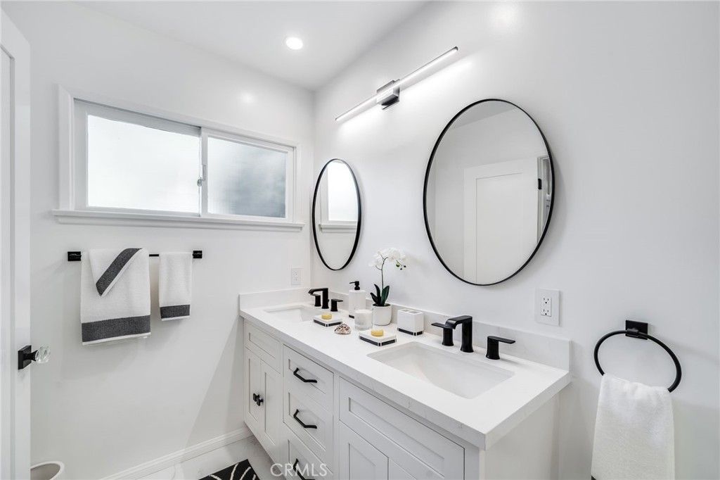 A classic mid-century rancher, the home has been reimagined and updated for modern living. The gorgeous kitchen, designed with a focus on functionality, is replete with top-shelf Wolf, Bosch, and Thermador appliances. The floor plan flows effortlessly from the ocean-view living room through the dining room to the expansive kitchen.