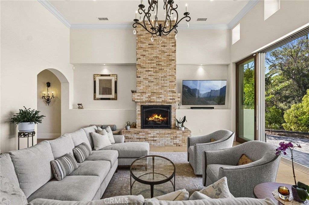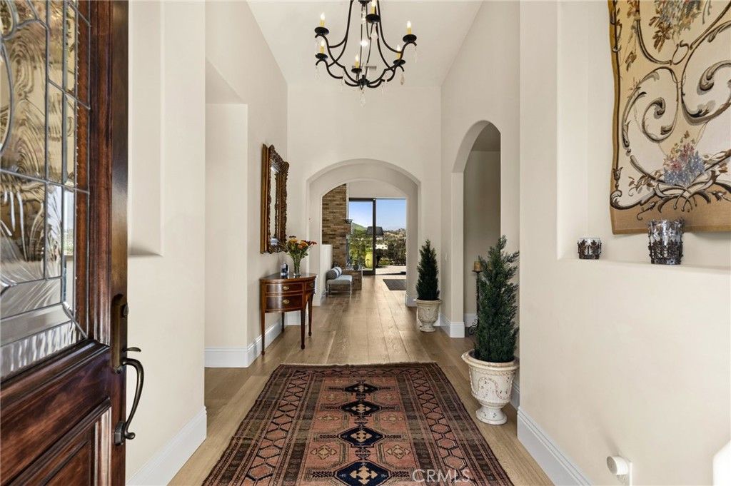 Exceptional single-level home on a sprawling 17,850 sq ft lot with sweeping views of historic San Juan Capistrano and spectacular mountain vistas. This 3-bedroom + bonus room residence that can easily be converted to a 4th bedroom offers lofty ceilings, rich French oak floors, crown molding, and abundant natural light through expansive windows and cantina doors that open to the outdoors. The gourmet kitchen features a massive island with seating, Sub-Zero fridge, Miele 8-burner cooktop, dual sinks, double ovens, a walk-in pantry, and opens to the spacious family room with floor-to-ceiling brick fireplace and seamless indoor/outdoor flow. The primary suite includes a large walk-in closet, direct patio access, soaking tub, dual sink vanity, and an oversized shower with multiple heads. Each ensuite bedroom enjoys private outdoor access. The backyard is designed for both relaxation and entertaining, with patios, garden paths, fire pit, and panoramic views. Additional highlights: large laundry room, 3-car epoxy garage with 220V, dual-zone HVAC, tankless water heaters, whole-house vacuum and filtration, and solid-core doors with designer hardware, gated entry, interlocking paver motor court, and zoning for equestrian use with room for a barn or pool. Just minutes from downtown, train station, beaches, trails, golf, top schools, and dining.