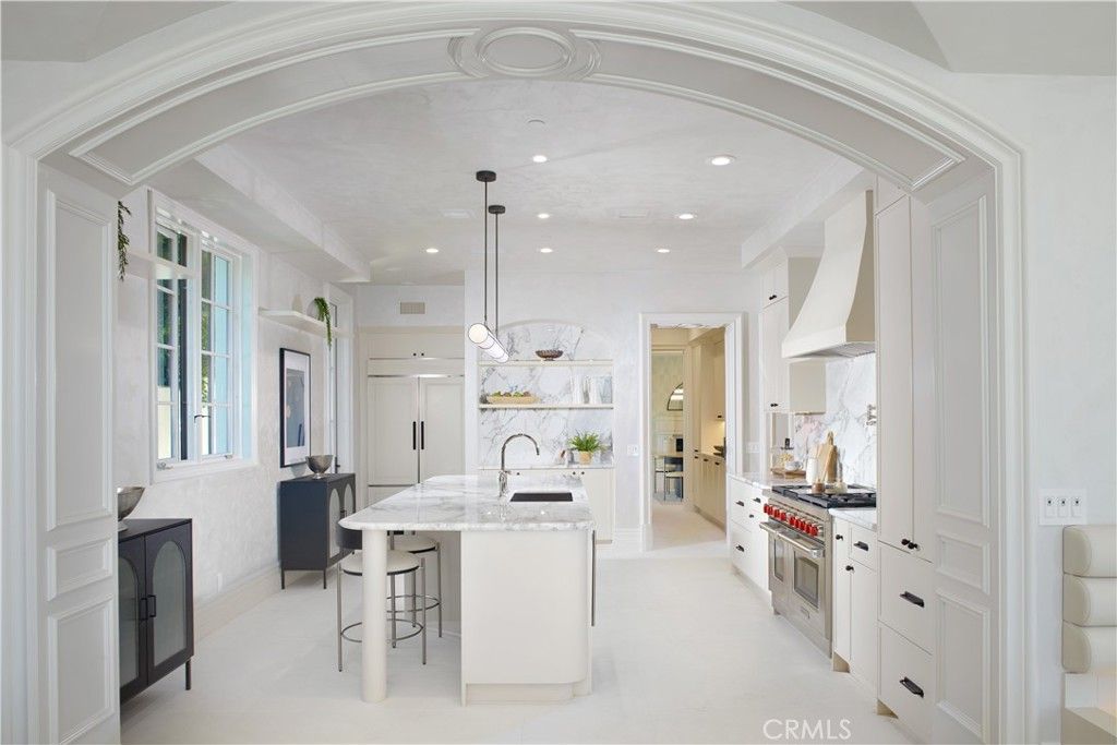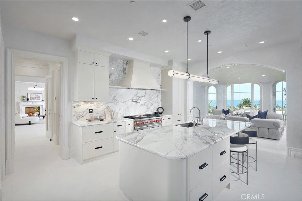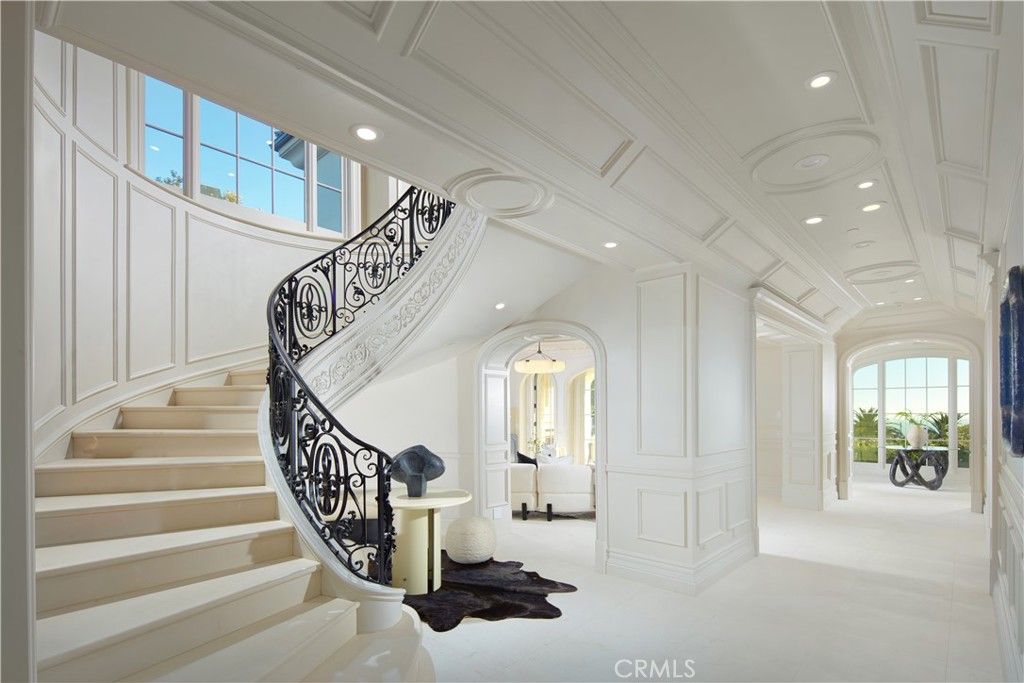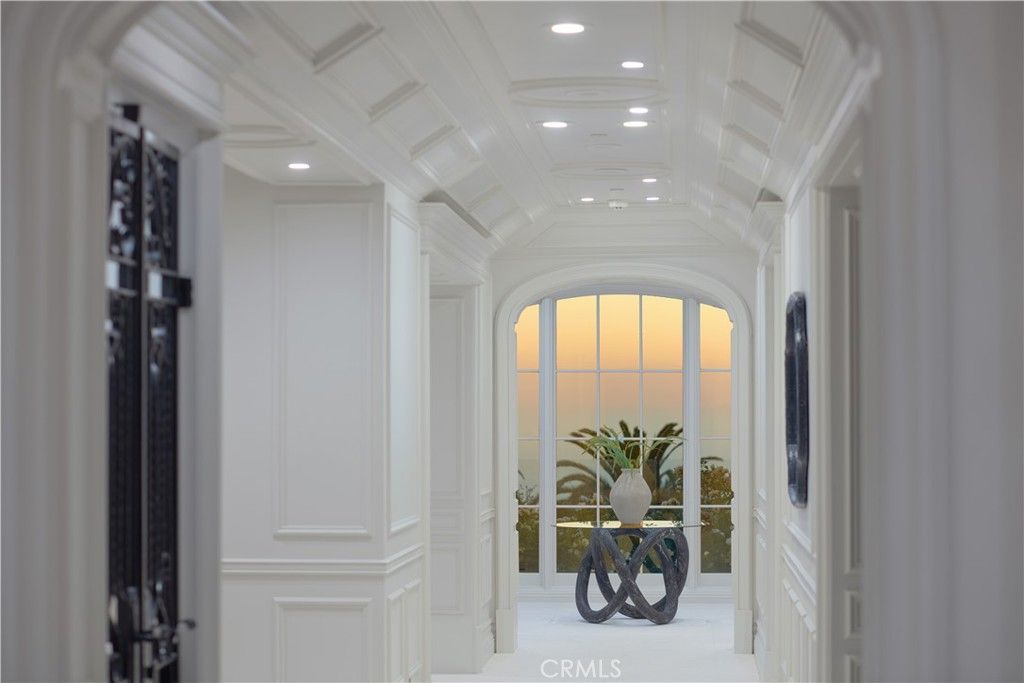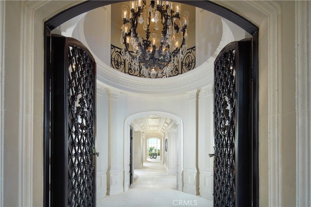 Exquisitely reimagined in 2025, this French palatial manor pairs timeless European elegance with fresh, modern sophistication. Set on a 13,155± sq. ft. parcel in the prestigious guard-gated enclave of Pelican Crest, the 8,367± sq. ft. residence commands sweeping views of the Pacific Ocean, Catalina Island, Newport Harbor, and the famed Pelican Hill Golf Course. Behind its stately façade, every detail has been elevated with the finest materials and craftsmanship: natural limestone and white oak herringbone floors, hand-brushed Venetian plaster, Moka Creme honed stone in all wet areas, and bespoke solid brass hardware in oil-rubbed bronze or polished nickel. The two-story foyer with antique chandelier leads to a grand staircase, gracious formal living and dining rooms with custom fireplaces, a richly appointed wood-paneled library, and a sun-filled family room with fireplace that adjoins the gourmet kitchen. A culinary showpiece, the kitchen featuring Calacatta Vagli marble surfaces, custom cabinetry, dual refrigerators, professional-grade appliance, and a built-in upholstered ocean-view banquette with custom breakfast table. The opulent primary suite offers a fireplace, spa-inspired bath with an ocean-view soaking tub, architectural glass-block accents for natural light, and a custom-designed closet. Additional amenities include five secondary suites, a tiered theater room, activity/fitness spaces, sauna, steam room, and a subterranean 7-car garage. Additional upgrades include a new roof, new HVAC system, all new plumbing connectors and two new water heaters. Outdoors, new stucco and roofing frame lush entertaining areas with a saltwater pool/spa and BBQ/kitchen with natural stone countertops "” all set against a backdrop of endless coastal beauty. This is Newport Coast living at its most refined "” where architectural artistry meets modern luxury in a rare, view-rich estate.