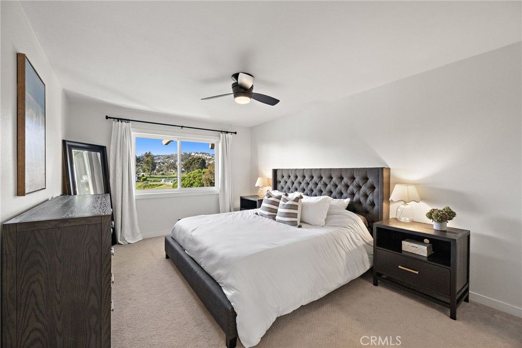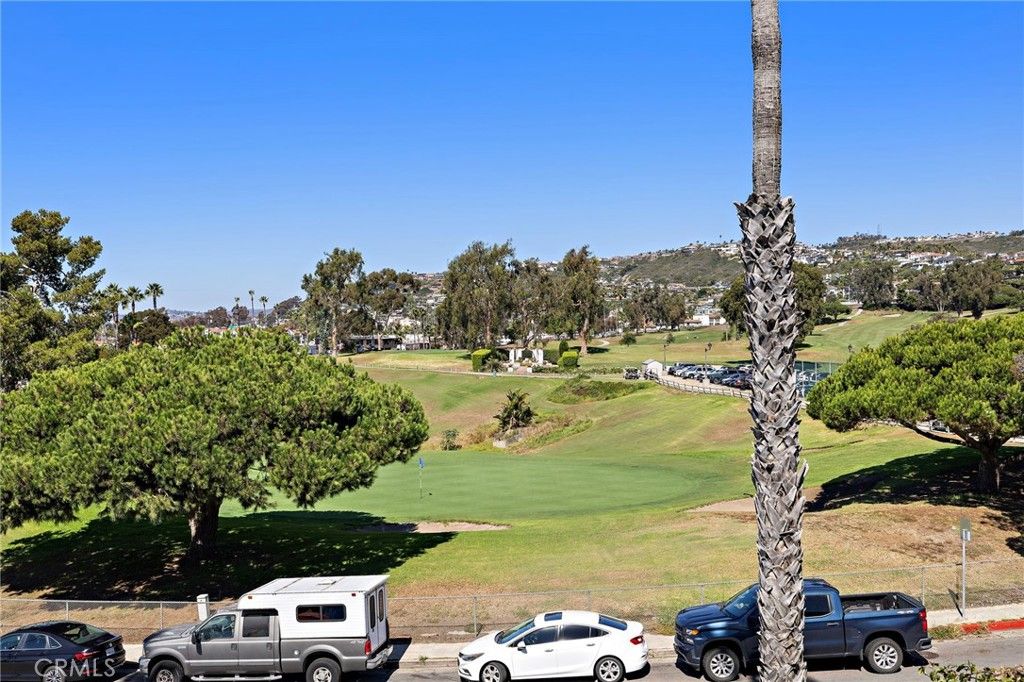 Perched on the top level of the Ocean Fairways community, this upgraded two-bedroom, two-bath home offers 1,326 square feet of single-level living and a rare vantage point over the lush fairways of the San Clemente Municipal Golf Course, with glimpses of the ocean beyond. Large windows and a spacious covered balcony draw in light and capture the home's tranquil setting. Inside, a modern concrete fireplace with custom mantel anchors the open living area. The kitchen combines quartz countertops, subway tile accents, ample cabinetry, and breakfast-bar seating for effortless everyday use. The primary suite enjoys wide golf course views, a generous closet, and an updated bathroom with double vanity and walk-in shower. A secondary bedroom and full bathroom complete the layout, while a dedicated laundry closet adds everyday convenience. Residents enjoy a private, gated community with countless amenities "” pool, spa, tennis courts, recreation lounge with kitchen and fireplace, fitness rooms with saunas, and secure building access. HOA dues include water, cable TV, sewer, trash, insurance, and exterior maintenance "” offering exceptional value and low-maintenance living. The location is a standout. Set directly across from the San Clemente Municipal Golf Course, the home also offers easy access to Vista Bahia Park and San Luis Rey Park for outdoor recreation. Plus, it's only .9 miles to Calafia Beach, 1.6 miles to downtown San Clemente, and a short ride to Trestles, one of Southern California's most coveted surf breaks. Golf cart and e-bike accessibility make it simple to reach beaches, parks, shops, and dining, while the community's price point offers a more attainable way to enjoy the coveted coastal lifestyle San Clemente has to offer.