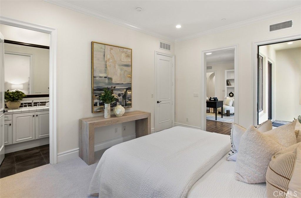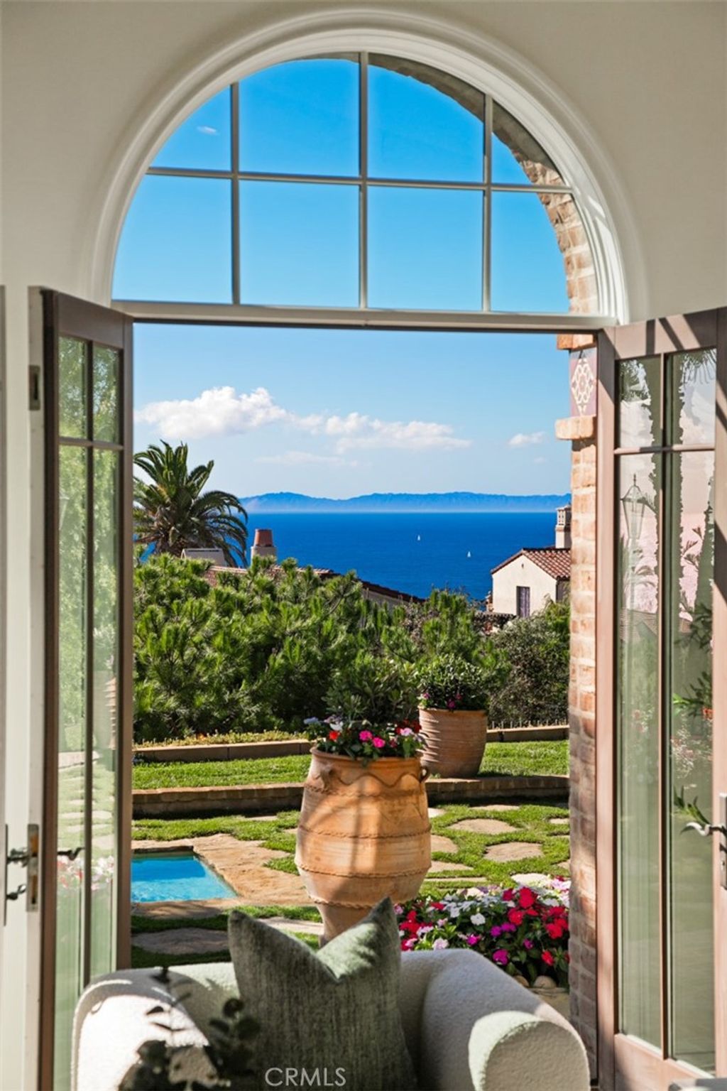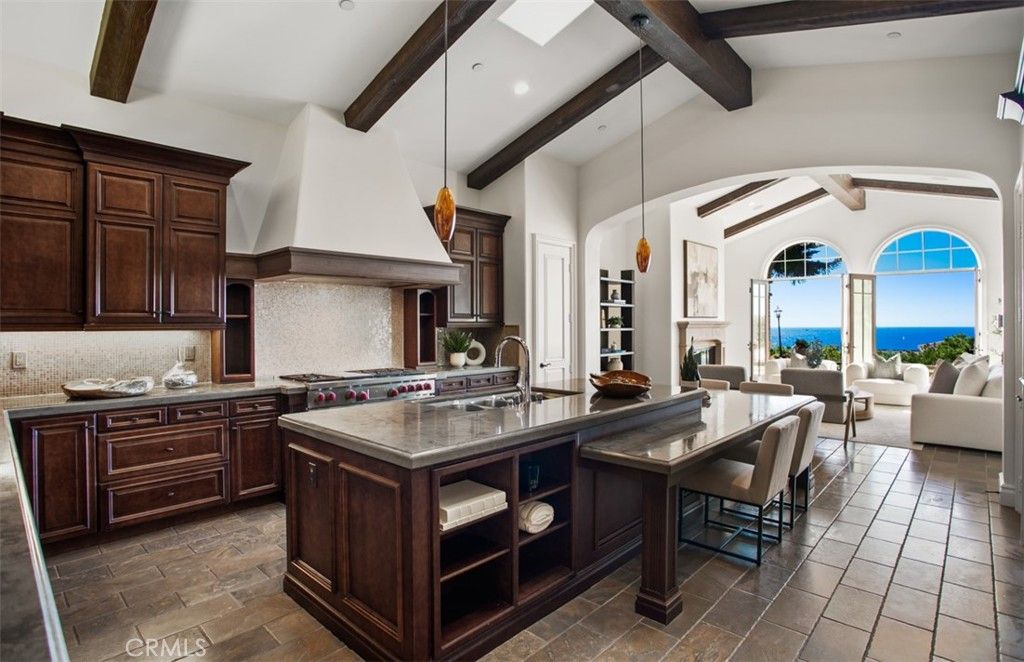 Set within the heart of Crystal Cove, 56 Archipelago is a rare coastal jewel: an exceptional single-level residence, a distinction held by fewer than five percent of homes in the community, with extraordinary ocean, sunset, and Catalina views. Once a former model for the Oceana tract, this home retains a sense of architectural intention and refinement, now recently refreshed to feel both elevated and effortlessly livable. Spanning approximately 3,631 square feet on an expansive 10,180-square-foot lot, the home contains 3 bedrooms and 4 bathrooms, an office, and a bonus room that could be used as a fourth bedroom. A stunning entry courtyard with tranquil fountain sets the tone; an intimate, sunlit arrival where ocean air drifts softly through brick and wood accents, offering a moment of calm before stepping inside. The single-level floor plan lives beautifully, allowing spaces to flow naturally from one to the next, ideal for both quiet daily living and relaxed entertaining. Large windows frame expansive ocean views, inviting natural light to dance across interiors finished in a thoughtful blend of wood, stone, and carpet flooring. The kitchen is warm and grounded, appointed with rich wood cabinetry, granite and stone countertops, and timeless materials that balance elegance with durability. Throughout the home, the finishes feel curated yet comfortable; refined without pretense. The home's oversized lot enhances privacy and openness, while its central location offers rare walkability and access within Crystal Cove. Just moments away, the coastal trails and preserved beauty of Crystal Cove State Park meet the everyday conveniences and seaside charm of the Crystal Cove Shopping Center. Residents also enjoy the security of 24/7 guard-gated entry and exclusive access to the Crystal Cove Canyon Club; a private haven offering resort-style amenities, gathering spaces, and moments of leisure. Rare in form, generous in scale, and serene in setting, 56 Archipelago is a home defined by quiet luxury: where thoughtful design, coastal beauty, and an unmatched Crystal Cove lifestyle come together in perfect harmony.