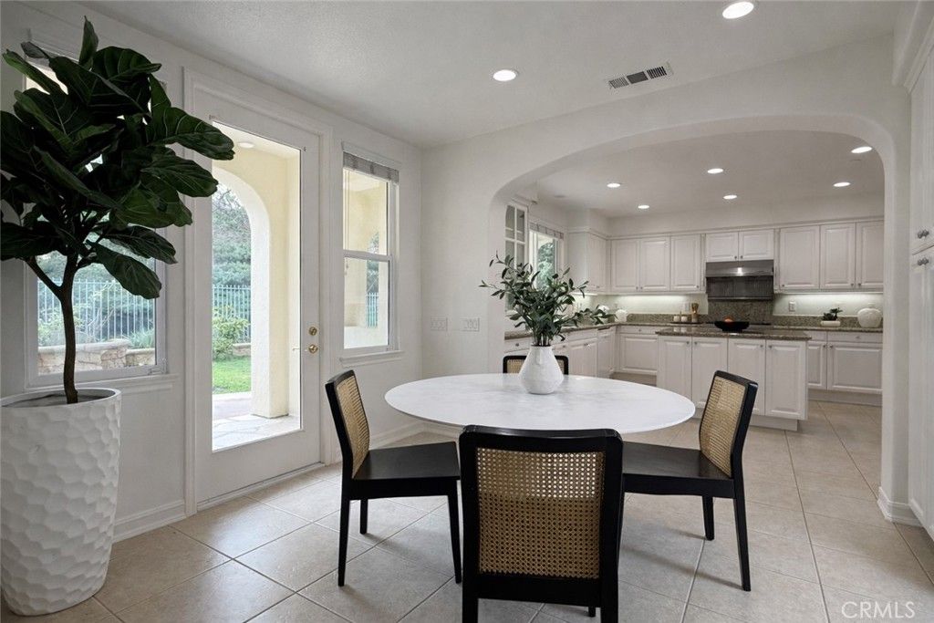 A welcoming entry opens to a light-filled interior courtyard, creating a peaceful focal point that seamlessly connects the formal living and dining rooms with a versatile main-level bedroom or office. The thoughtfully designed open-concept floor plan is ideal for both sophisticated entertaining and comfortable everyday living.