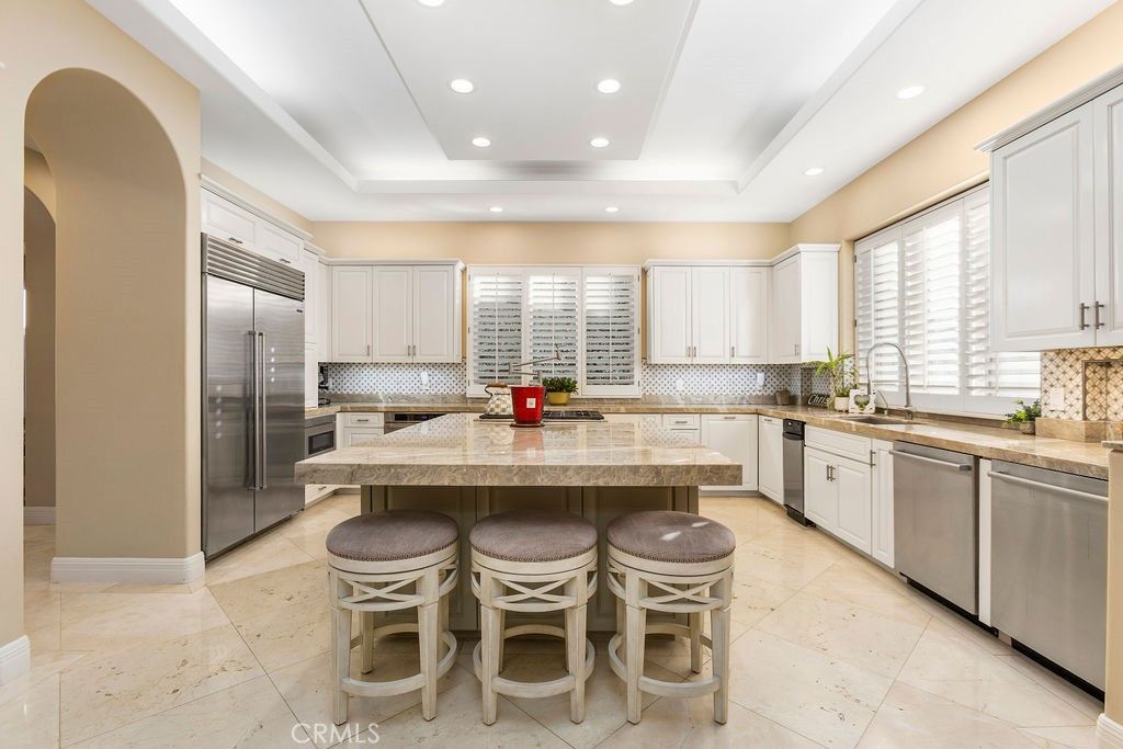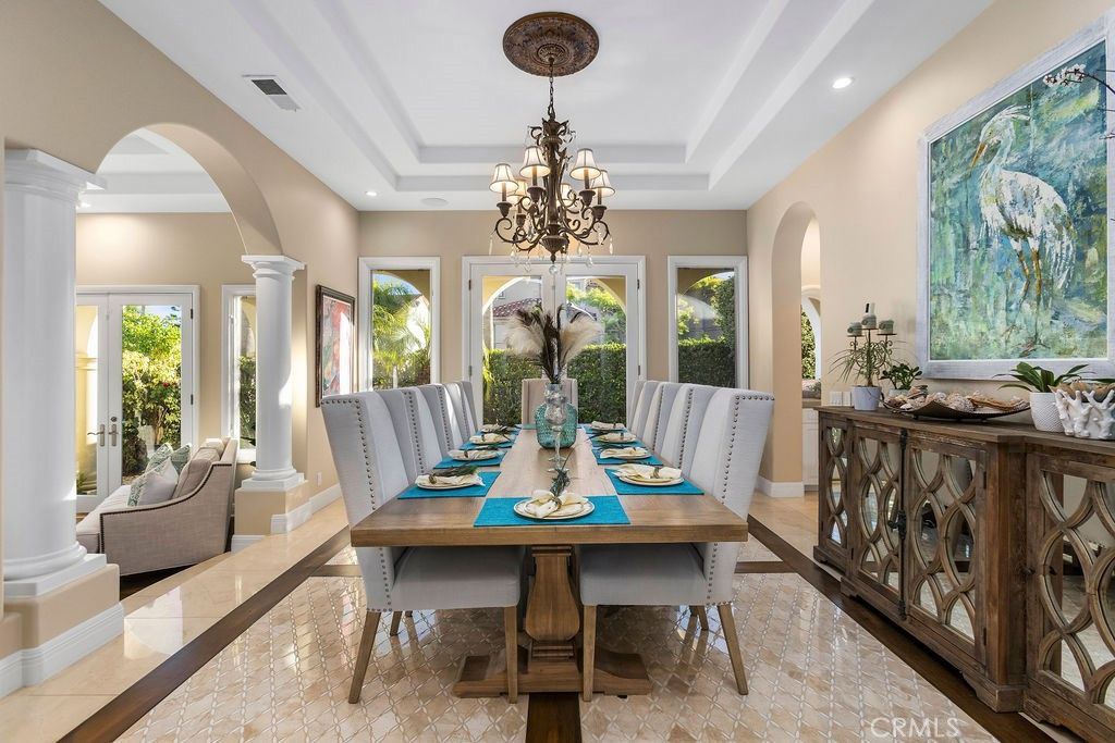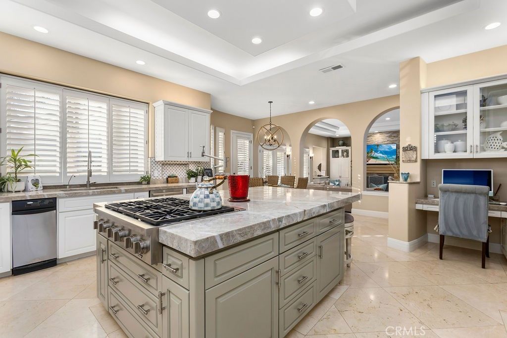 A superb opportunity to lease this custom Mediterranean residence, ideally situated on a quiet cul-de-sac shared by only three other homes, within the prestigious 24-hour gated community of Ocean Ranch in Laguna Niguel. Offered fully furnished & immaculately maintained, this exceptional home showcases quality craftsmanship, refined finishes, & thoughtfully curated furnishings throughout. The private rear outdoor patio is truly an entertainer's dream, featuring a resort-style pool & spa with waterfall feature, a built-in BBQ with bar seating, & an additional secluded lounging area complete with firepit & sun lounger perfect for relaxing evenings. The heart of the home is the stunning gourmet kitchen, highlighted by an impressive center island with gas cooktop & pot filler, quartzite countertops, stainless steel built-in refrigerator & freezer, two dishwashers, a walk-in pantry, & a convenient study nook. The kitchen & adjacent family room, both enhanced by feature fireplace & wet bar, offer seamless access to the backyard entertainment spaces for effortless indoor-outdoor living. A generous main-level primary suite option provides a luxurious retreat with French doors opening directly to the rear patio areas. The second floor main Primary suite offers a spacious ensuite bathroom with dual vanities, makeup area, separate tiled shower, oversized spa tub, & dual-sided fireplace. The primary bedroom itself is a tranquil sanctuary, featuring a fireplace, ample seating, generous walk in closet & an abundance of natural light. Secondary bedrooms are generous in size overlooking the private back yard & offer beautifully upgraded ensuite bathrooms. A laundry room with ample storage is located on the second floor. The main floor office/library, conveniently positioned near the main entrance includes custom built-in shelving & offers privacy & an ideal work-from-home environment. Completing this exceptional offering a 3-car garage with EV charger, additional off-street parking, & a comprehensive security system with exterior cameras. The Ocean Ranch community contains a community pool/spa & sport court, is within walking distance to St Anne's Elementary School, Ocean Ranch Shopping Plaza inclusive of Cinepolis Movie Theatres, Trader Joe's & dining establishments. Minutes to the Ritz Carlton & Waldorf Resorts, as well as the world-renowned Salt Creek beach with incredible surfing breaks. Equally close to Dana Point Harbor & Lantern District, truly a "˜Must See'!