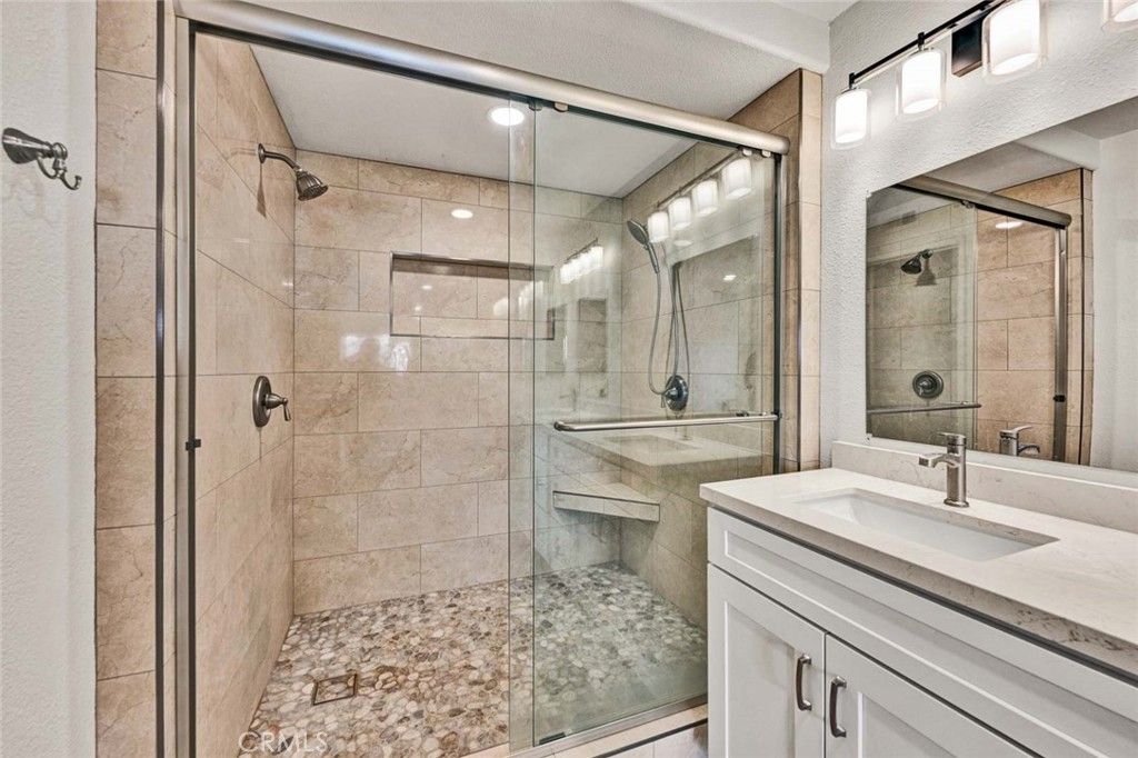 This beautifully updated single-level condo offers comfortable, easy living with an attached two-car garage and a large private, landscaped patio"”perfect for relaxing or entertaining. The home has been freshly painted and features new flooring, baseboards, and appliances, and plantation shutters. The living room is bright and welcoming, featuring a newly tiled fireplace and sliding glass doors that open directly to the patio, bringing in great natural light. The remodeled kitchen includes quartz countertops, stainless steel appliances, and a stainless steel sink, offering a clean, modern space for everyday use. The primary bedroom feels like a private retreat with patio access, a walk-in closet, and a newly remodeled en-suite bathroom with updated cabinetry and a tiled shower with dual shower heads and a glass door. The second bedroom and bathroom are also fully upgraded and move-in ready. The community offers a pool, spa, and beautifully maintained landscaping, and is conveniently located near shopping, dining, great schools, and beaches, with easy access to toll roads and freeways.