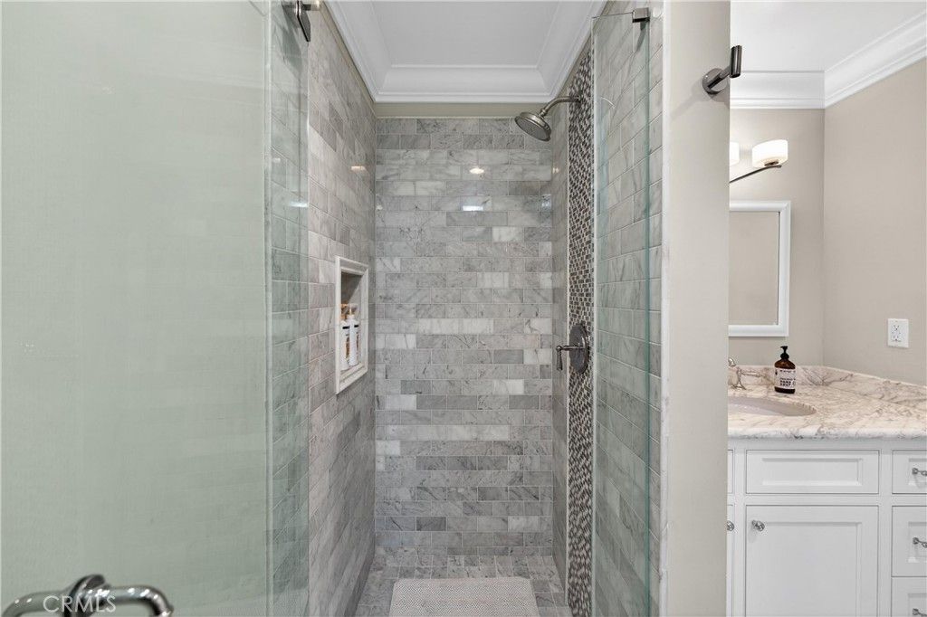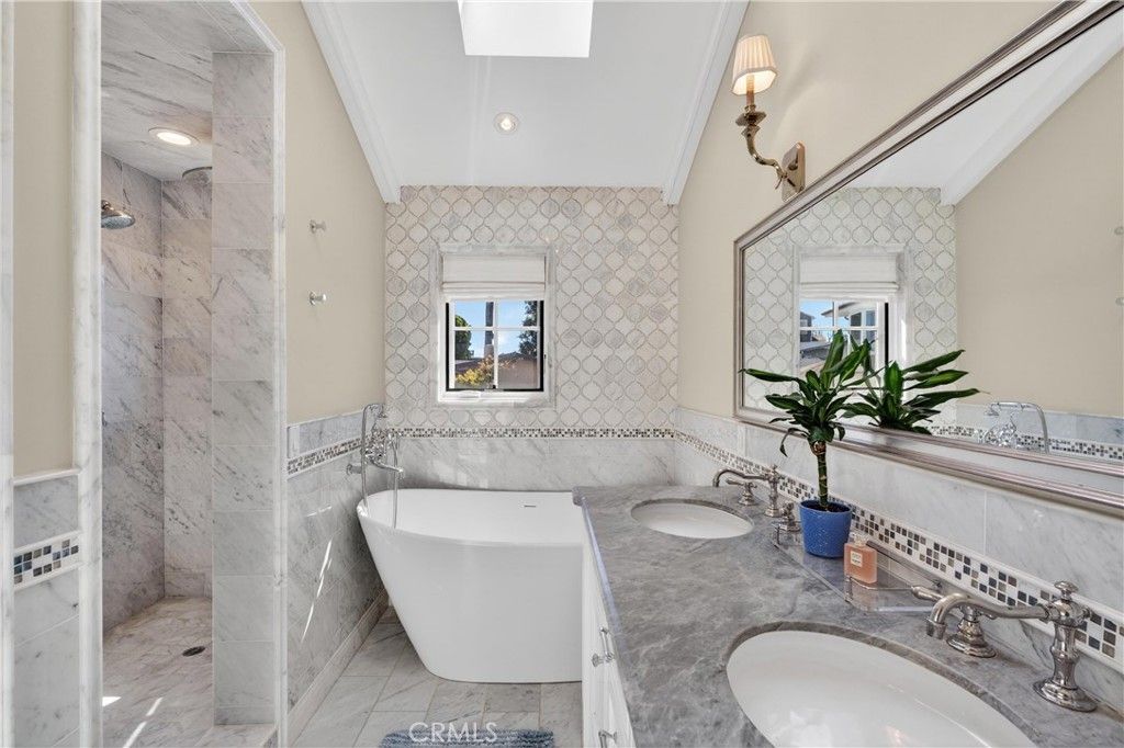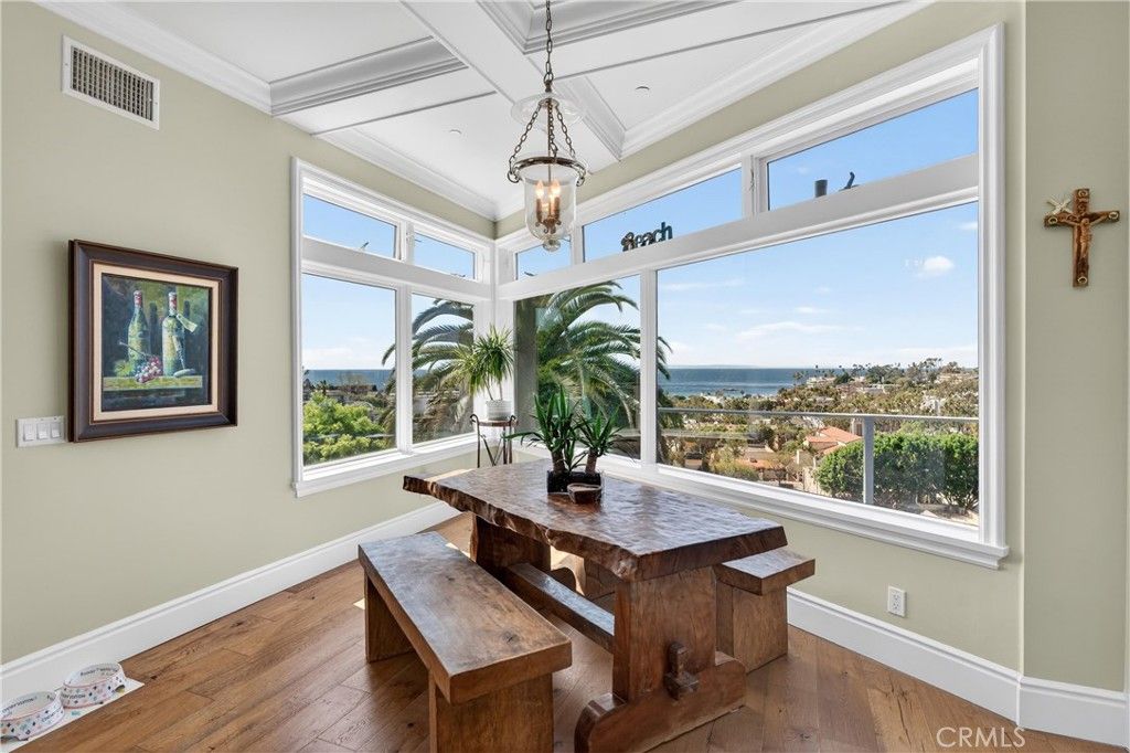 The home captures sweeping whitewater, Catalina Island, and city-light views, while remaining just moments from the Village. Designed in a sophisticated Transitional Beach Craftsman style, the property blends coastal elegance with thoughtful architectural detail. The private casita, positioned across the courtyard, includes a full kitchen and laundry"”ideal for guests or extended stays.